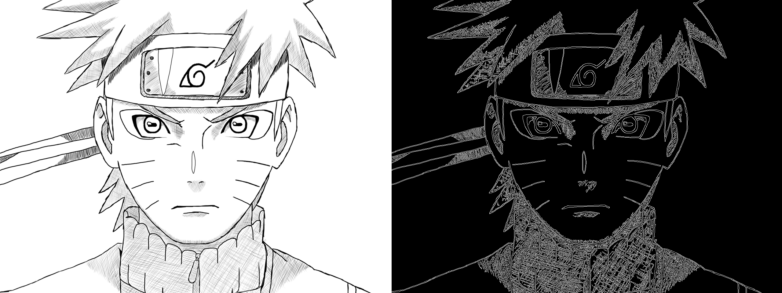 之后我们需要读取图床的图片链接,或者读取上传到Colab的图片线稿。然后我们使用OpenCV的Canny轮廓提取函数获得图像的Canny边缘。后面图片展示的就是原始线稿和提取的Canny边缘。