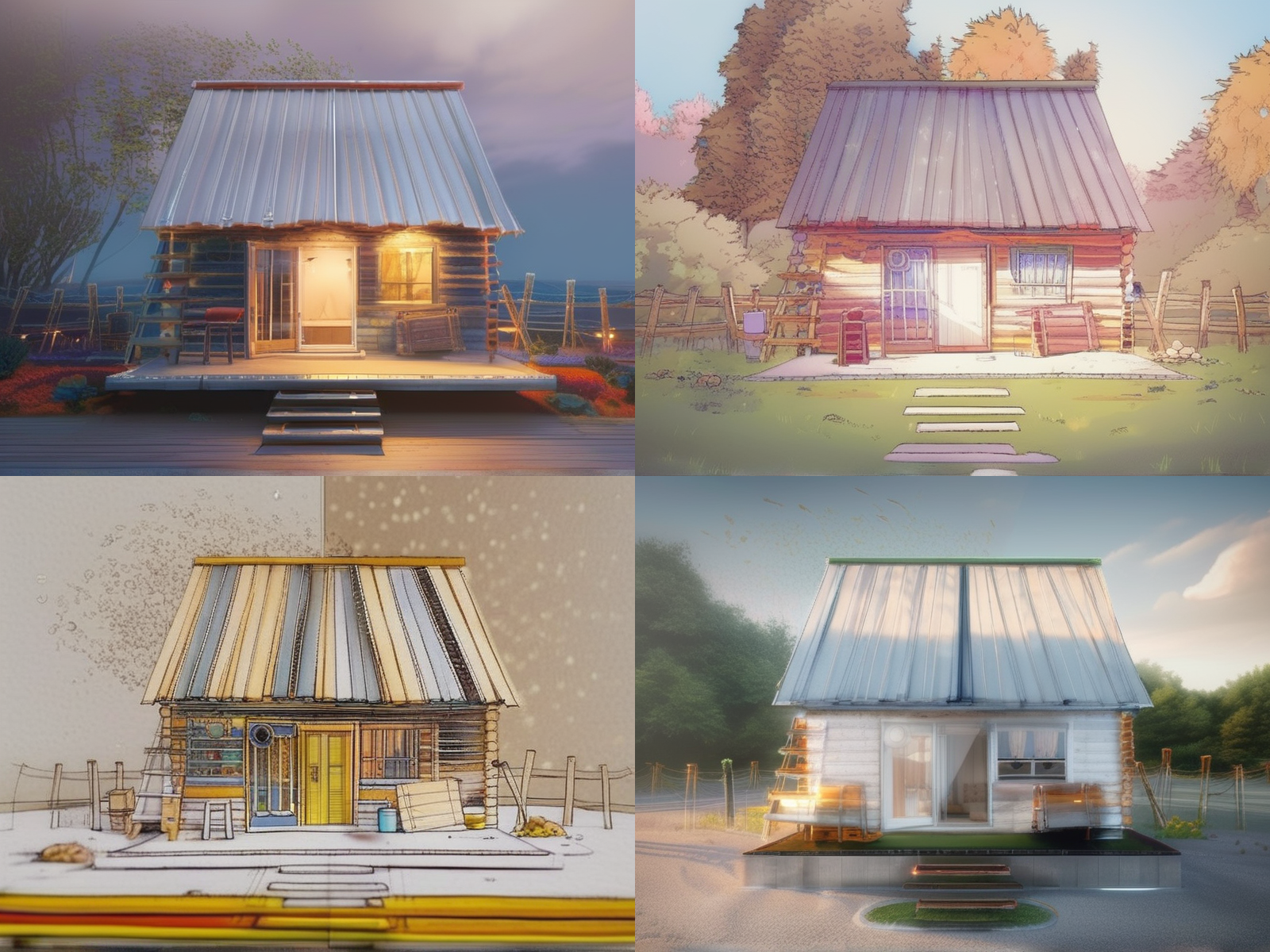 使用同样的方法,我们可以给下面图像中的房屋简笔画进行上色。这里我们用到的prompt描述是“一张高质量、有细节的专业图片”。你可以点开图片查看上色效果。