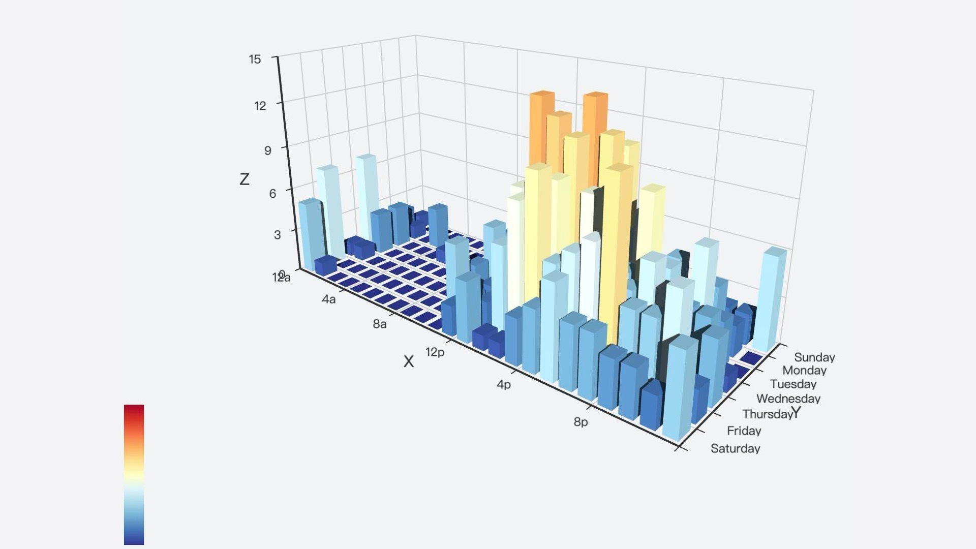 在这张图表上,为了强调产品的生产量,我们用立方体的高度和颜色同时表示了这一个维度的变量。