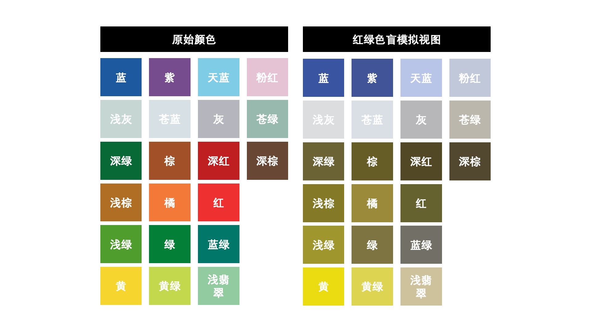 因此,即使我们设计的颜色在我们看来已经足够有差异性了,也可能在一些低色彩分辨率的设备上表现得不那么友好,甚至会给视觉障碍人士带来困扰。