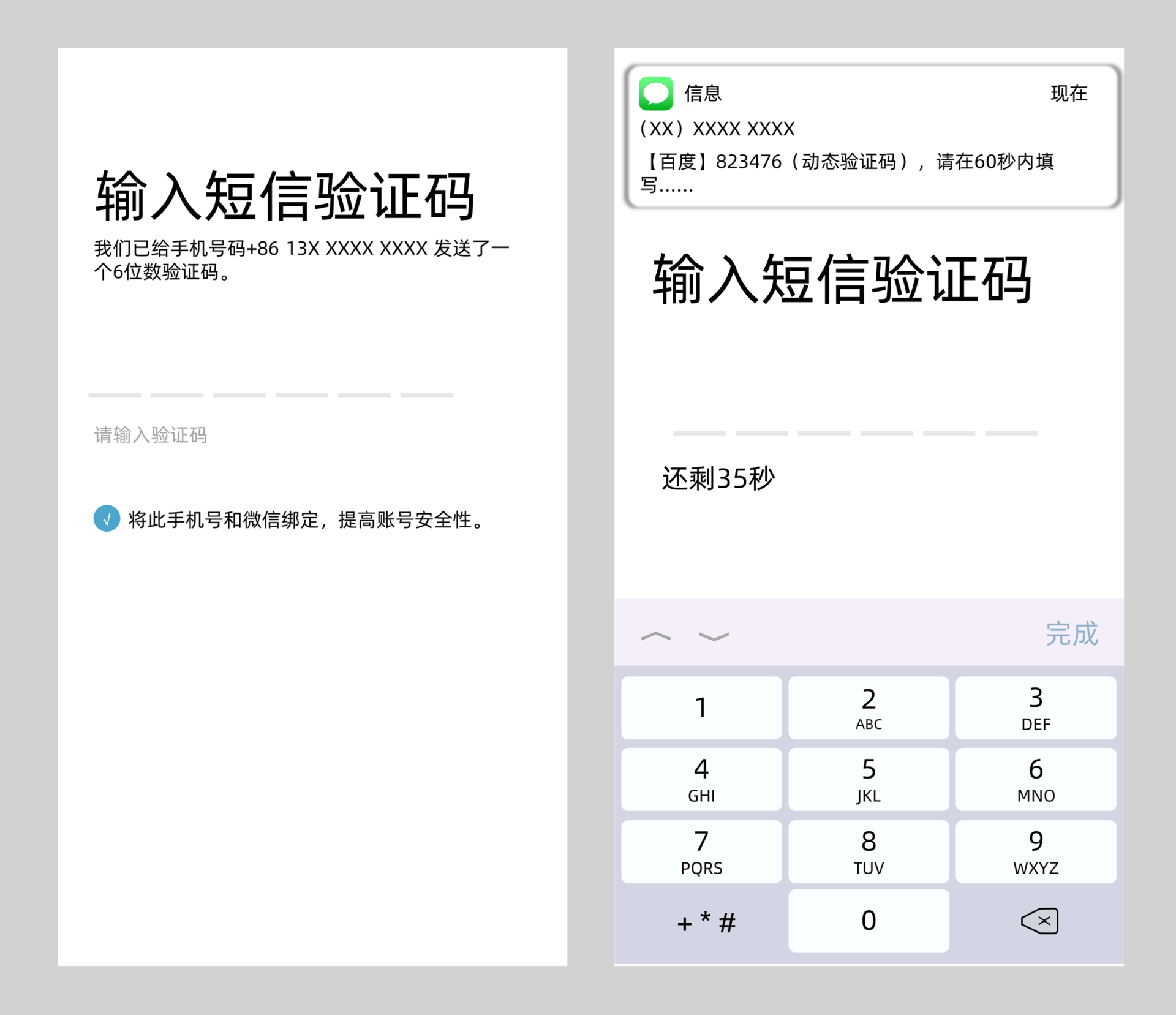 另一种方式就是手机短信验证。用户会信任运营商的短信通道,认为这个更安全。出于安全原因考虑,短信验证都在几十秒内完成输入。由于验证码通知短信在手机上弹窗呈现的时候,只会展示第一行的内容,如果要提升用户验证码的输入效率,需要在短信通知的最开始就把验证码体现出来,你可以参见下图。