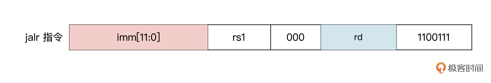 同时,JAL 也会把紧随其后的那条指令的地址,存入目标寄存器中。这样,如果目标寄存器是零,则 JAL 就等同于 GOTO 指令;如果目标寄存器不为零,JAL 可以实现函数调用的功能。