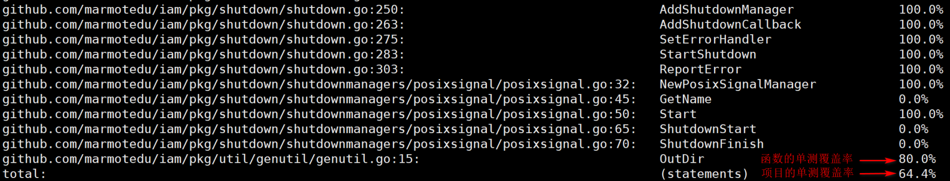 另外,还可以通过make cover来进行单元测试覆盖率测试,make cover会执行iam/scripts/make-rules/golang.mk文件中的go.test.cover伪目标,规则如下: