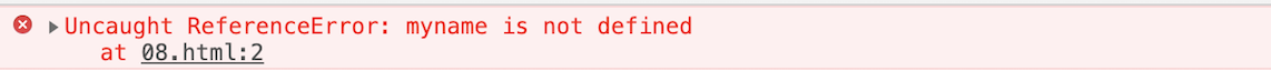 - 同样执行第2行的时候,由于变量myname也未定义,所以同样也会报错。