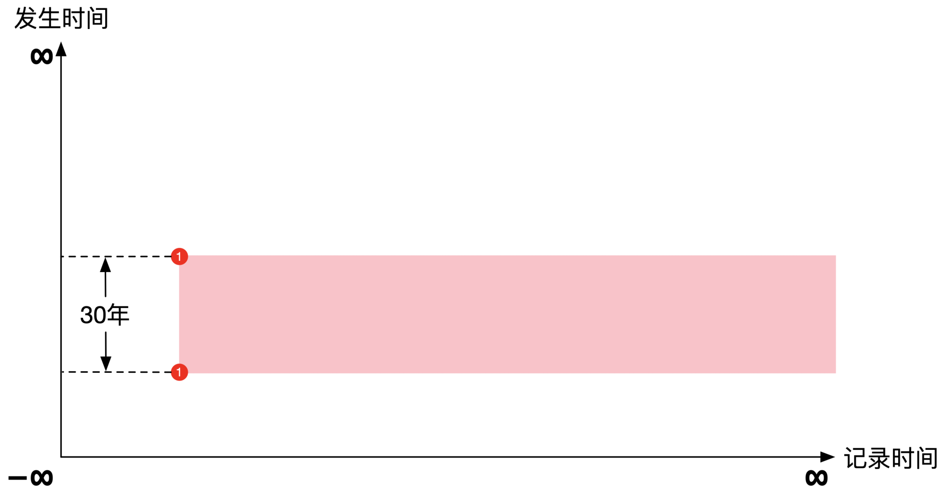 我们在最开始介绍双时序数据库的可见范围时,没有说过发生时间的可见范围有多大。所以可见范围默认是一直可见的。但是理论上并没有这个假设。理论上数据的可见范围可以是有限的。