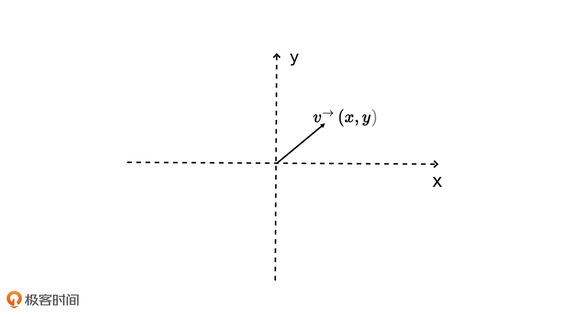 假设,现在这个平面直角坐标系上有一个向量v。向量v有两个含义:一是可以表示该坐标系下位于(x, y)处的一个点;二是可以表示从原点(0,0)到坐标(x,y)的一根线段。