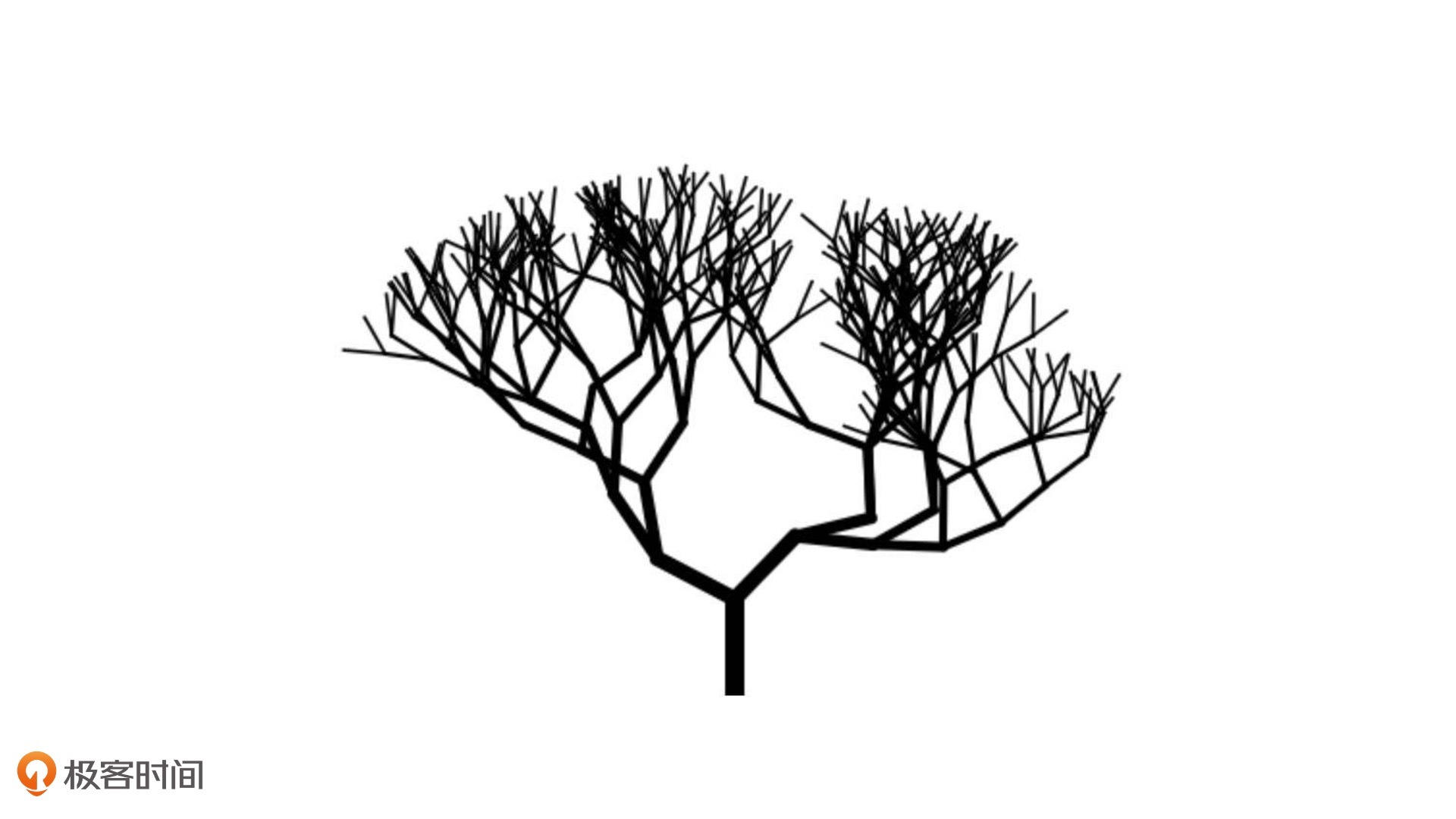我们可以从一个起始角度开始递归地旋转树枝,每次将树枝分叉成左右两个分枝: