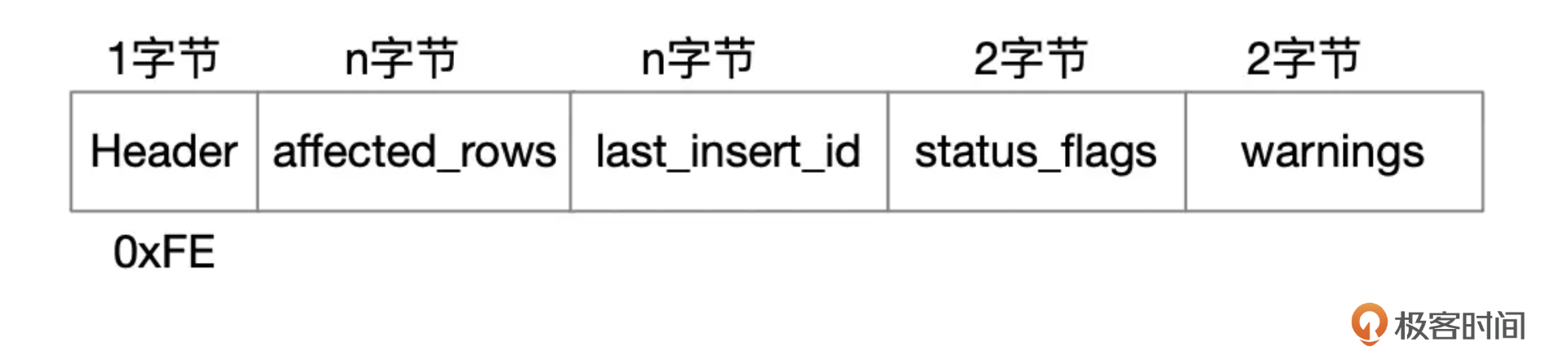OK_Packet标志着一个语句的结束,包里面也包含了一些额外的信息,比如SQL影响了多少行数据,SQL执行是否有Warning。
