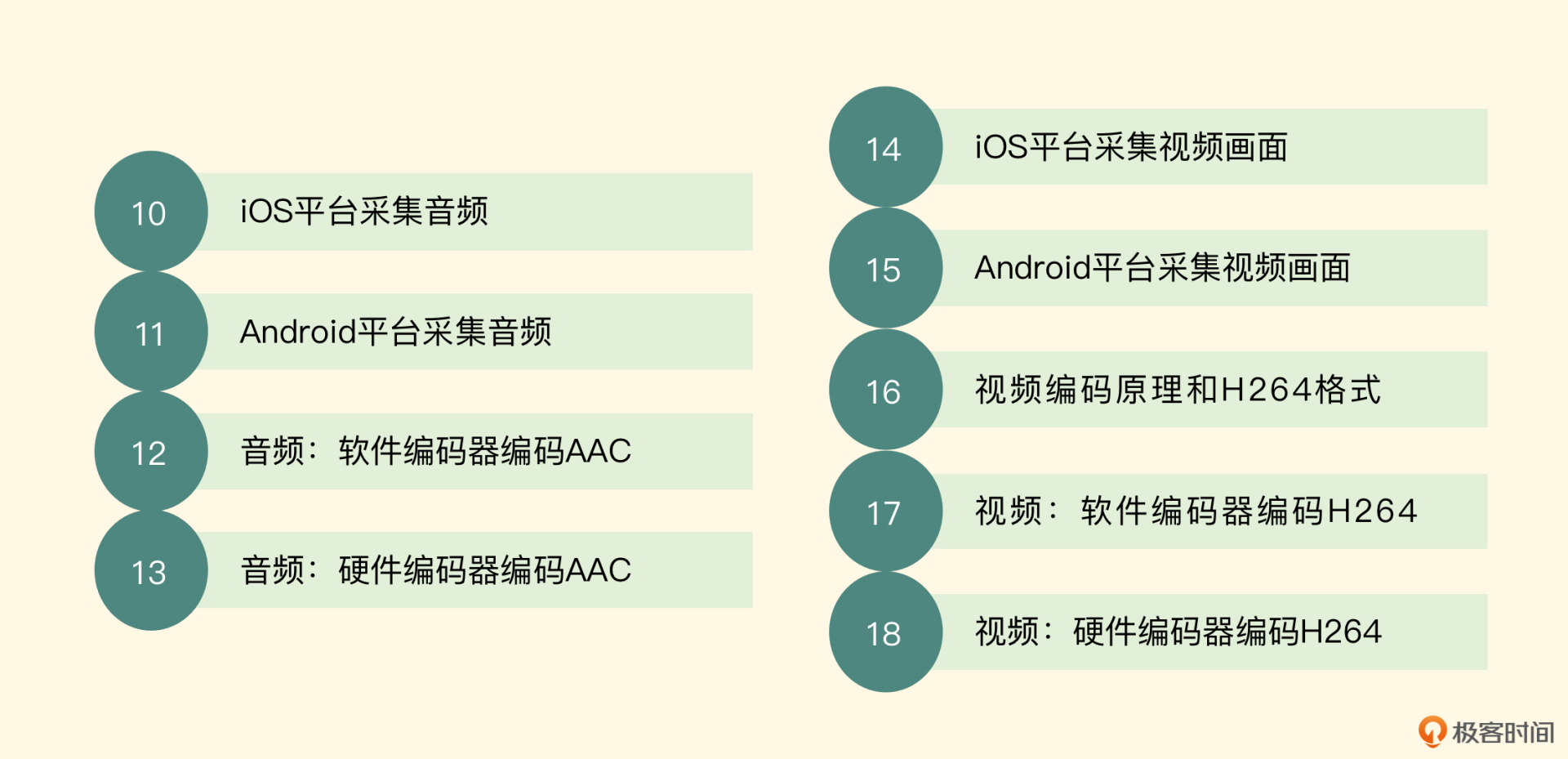 我来考考你,如果让你基于这个架构设计一个推流器的架构,你思考一下要在此基础上加入哪些模块,这些模块的职责又是什么?欢迎把你的答案留在评论区,也欢迎你把这节课分享给更多对音视频感兴趣的朋友,我们一起交流、共同进步。下节课再见!