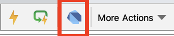 **接下来则是调试应用了。**和之前通过点击run按钮的运行方式不同,这一次我们需要点击工具栏上的虫子图标,以调试模式启动App,如下图所示: