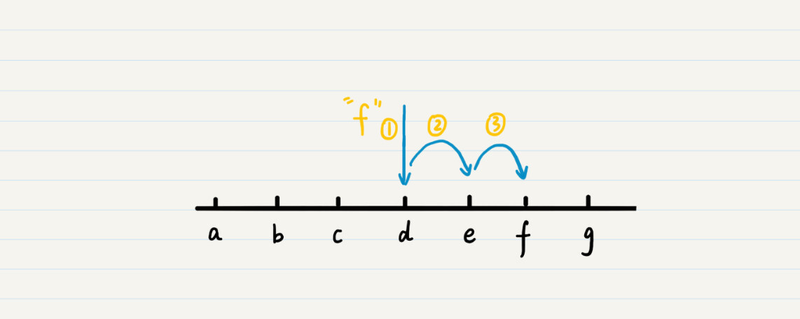 我把在a到g的7个字符中查找f的过程,画成了一张图,你可以看看。