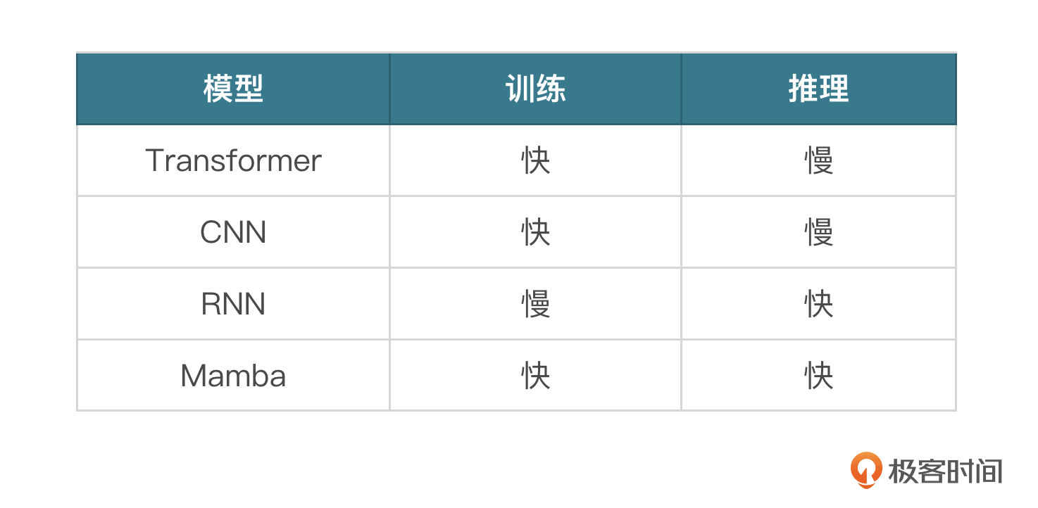 然而技术的进步从未停止,最近出现了一种新型模型——**Mamba,被认为是 Transformer 的最强挑战者。**那么,Mamba凭什么能与Transformer一较高下呢?这节课我就来带你看看Mamba的过人之处。