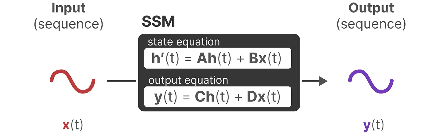 SSM描述的是动态系统,例如在 3D 空间中移动的物体,可以通过两个方程根据其在时间$t$的状态进行预测,其核心是两个方程:状态方程和输出方程(或者也可以称为:观测方程)。