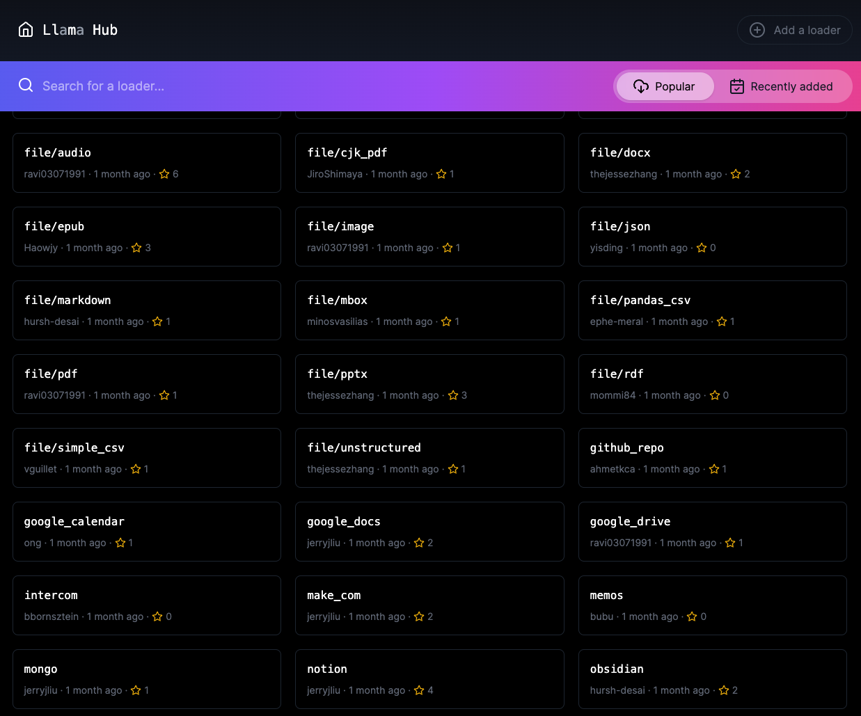 围绕OpenAI以及整个大语言模型的生态还在快速发展中,所以llama-index这个库也在快速迭代。我自己在使用的过程中,也遇到各种各样的小Bug。对于中文的支持也有各种各样的小缺陷。不过,作为开源项目,它已经有一个很不错的生态了,特别是提供了大量的DataConnector,既包括PDF、ePub这样的电子书格式,也包括YouTube、Notion、MongoDB这样外部的数据源、API接入的数据,或者是本地数据库的数据。你可以在 llamahub.ai 看到社区开发出来的读取各种不同数据源格式的DataConnector。