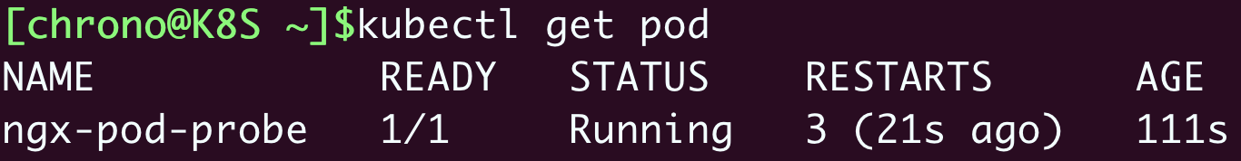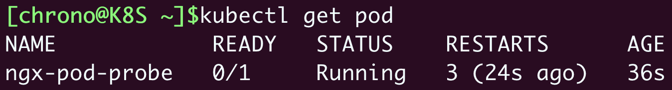 当StartupProbe探测失败的时候,Kubernetes就会不停地重启容器,现象就是 RESTARTS 次数不停地增加,而livenessProbe和readinessProbePod没有执行,Pod虽然是Running状态,也永远不会READY:
