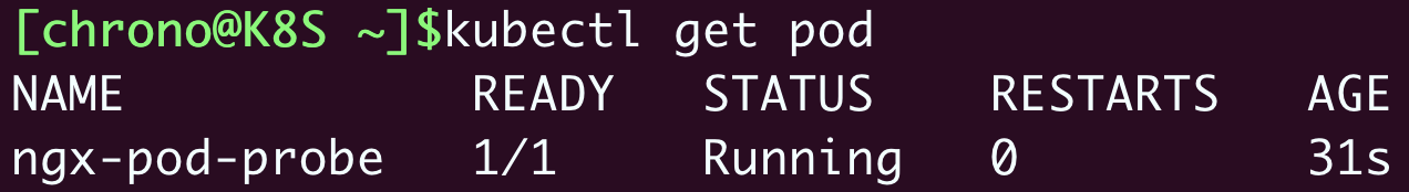 StartupProbe使用了Shell方式,使用 cat 命令检查Nginx存在磁盘上的进程号文件(/var/run/nginx.pid),如果存在就认为是启动成功,它的执行频率是每秒探测一次。