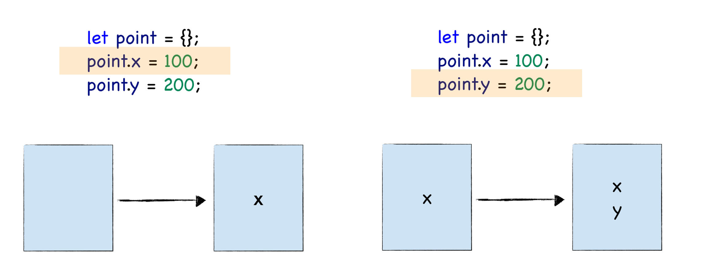 有了map之后,当你再次使用point.x访问x属性时,V8会查询point的map中x属性相对point对象的偏移量,然后将point对象的起始位置加上偏移量,就得到了x属性的值在内存中的位置,有了这个位置也就拿到了x的值,这样我们就省去了一个比较复杂的查找过程。