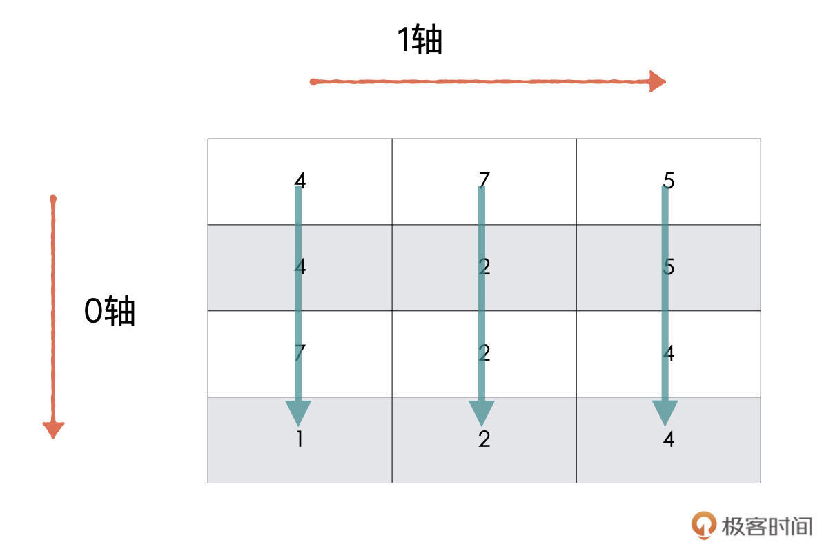 这是一个非常重要的概念,也是NumPy数组中最不好理解的一个概念。它经常出现在np.sum()、np.max()这样关键的聚合函数中。