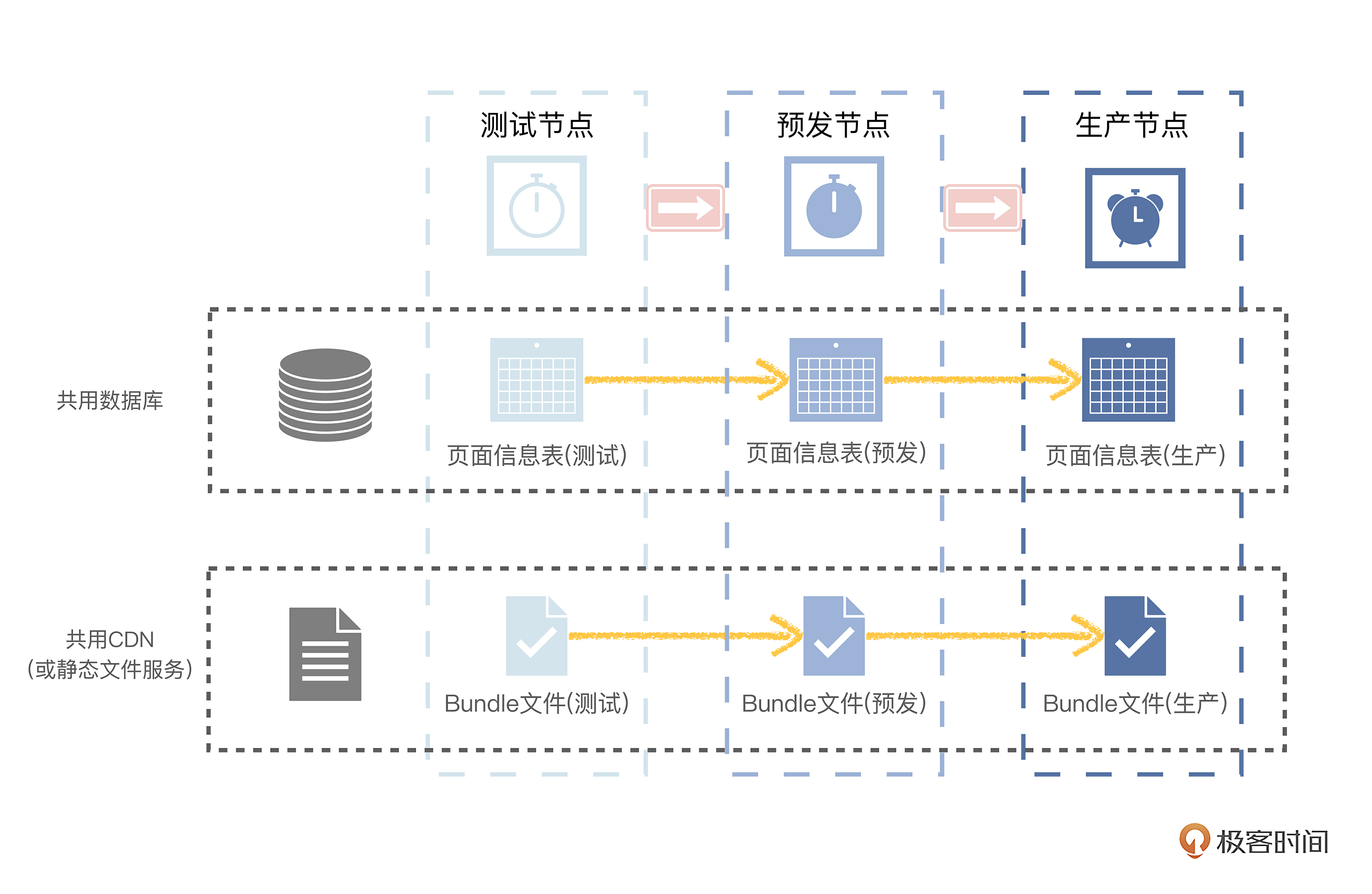 技术方案,就是基于不同节点环境,把页面数据流转到对应环境的服务器数据库中,把页面静态资源发布到对应环境的CDN服务中。