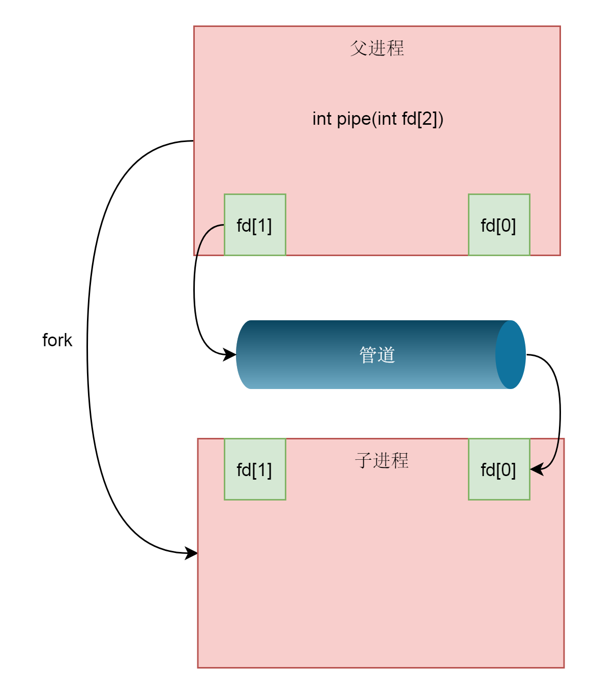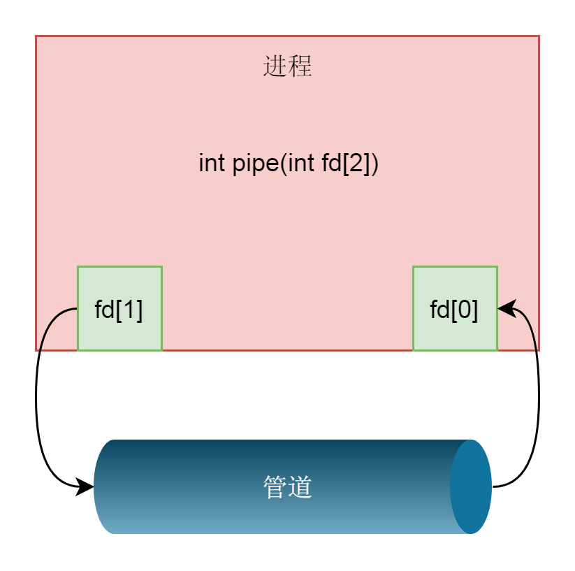 在这里,我们创建了一个管道pipe,返回了两个文件描述符,这表示管道的两端,一个是管道的读取端描述符fd[0],另一个是管道的写入端描述符fd[1]。