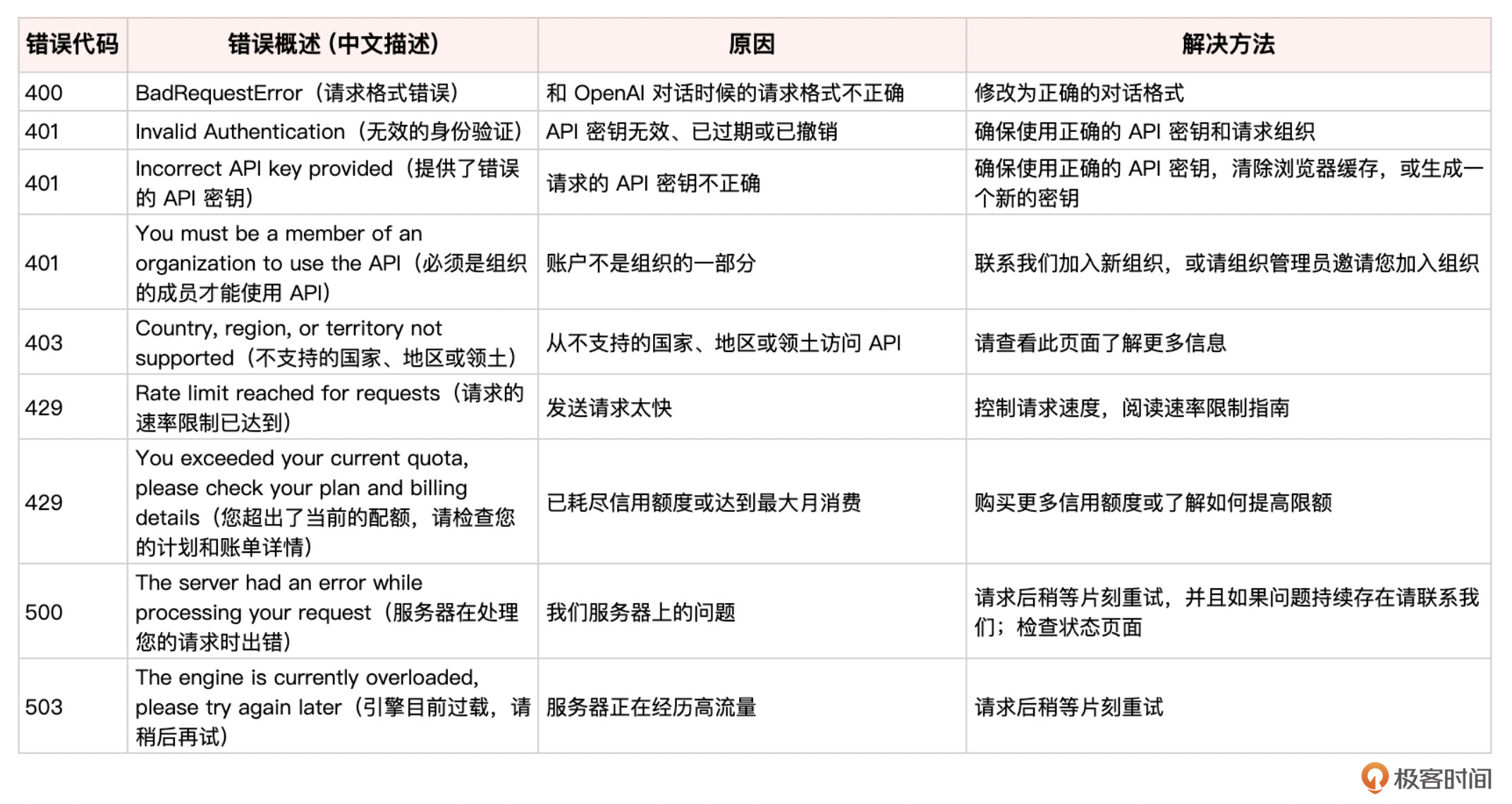 下面我们总结一下OpenAI API返回的常见错误类型,并提供处理这些错误的实用技巧。