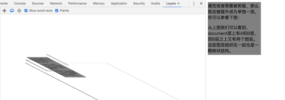 所以说,元素有了层叠上下文的属性或者需要被剪裁,满足其中任意一点,就会被提升成为单独一层。