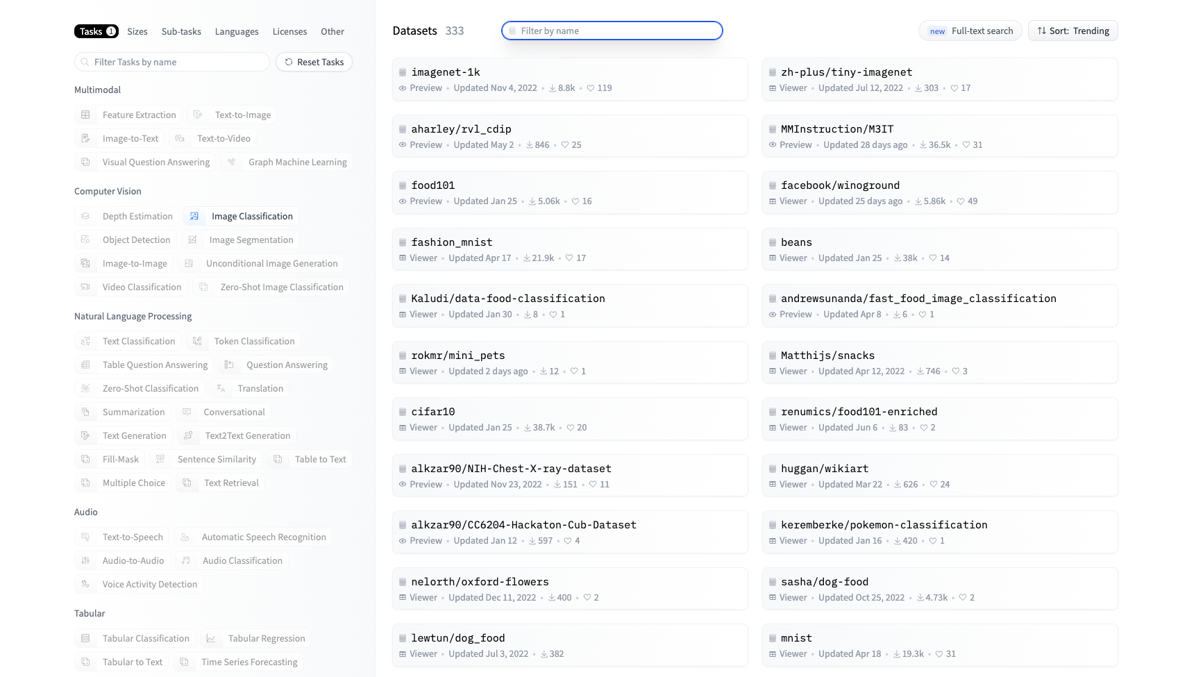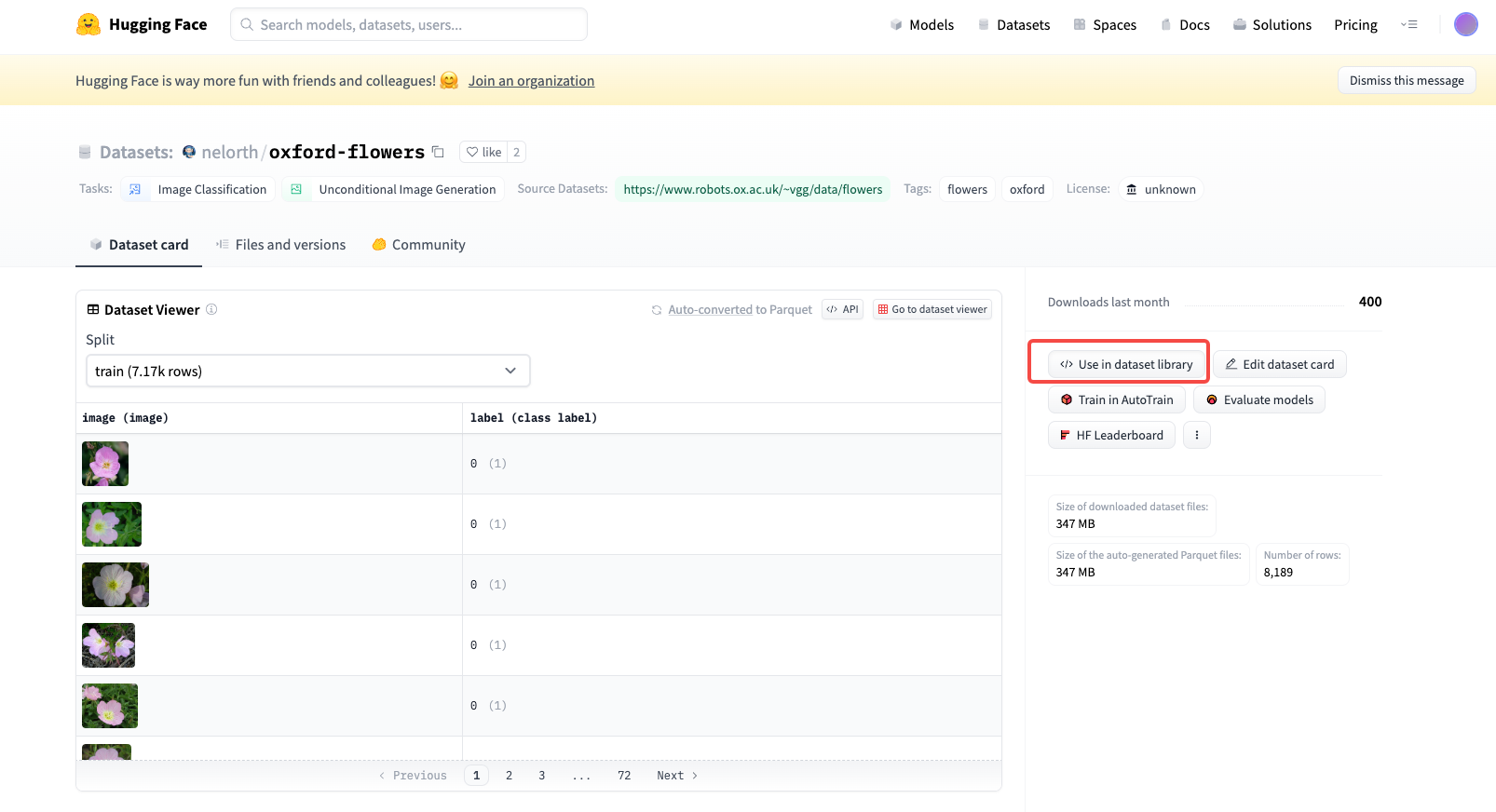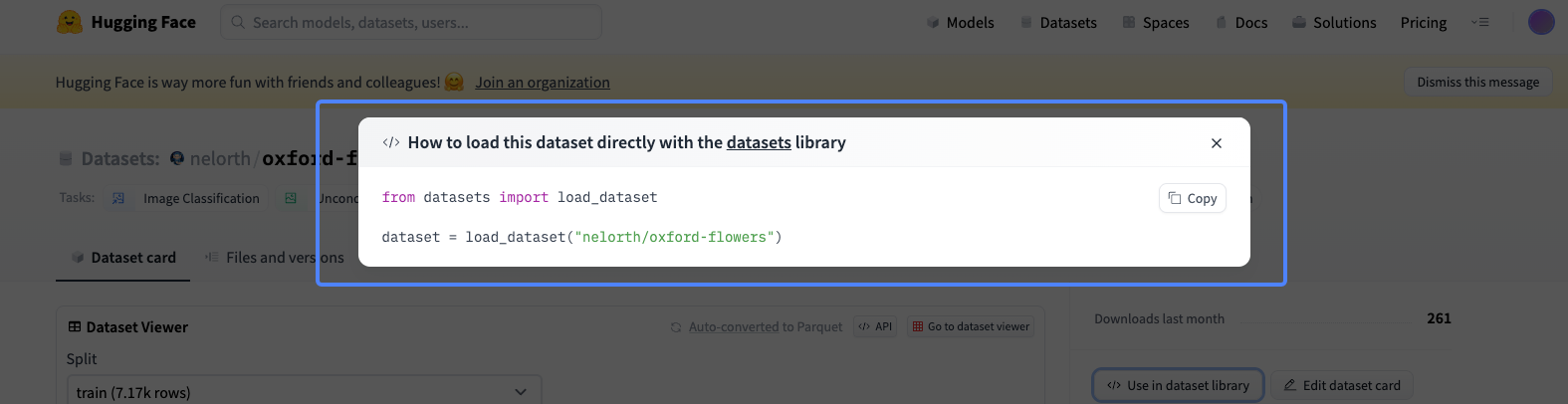 你也可以在 Hugging Face 上挑选你喜欢的图像数据集,挑选和使用方法可以参考后面的截图。