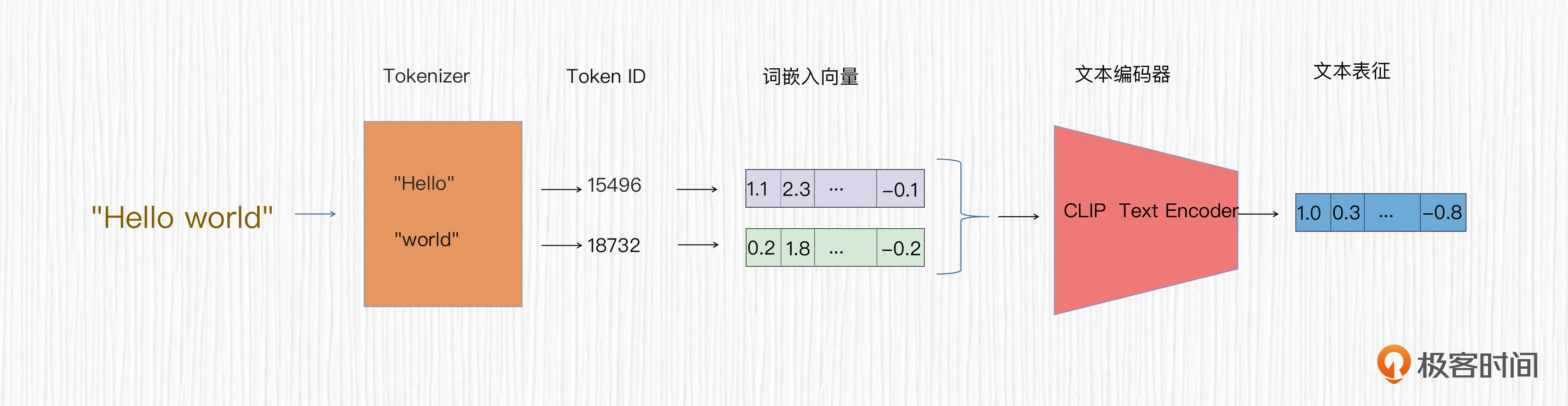 你可能在代码中发现了一个tokenizer变量。它的作用便是我们在[第7讲]中提到的,对我们输入的prompt进行分词后获取token_id。有了token_id,我们便可以获取模型可用的词嵌入向量。CLIP模型的文本编码器(text_encoder)基于词嵌入向量,便可以提取文本特征。VAE模块和CLIP模块都不需要权重更新,因此上面的代码中将梯度(grad)设置为False。