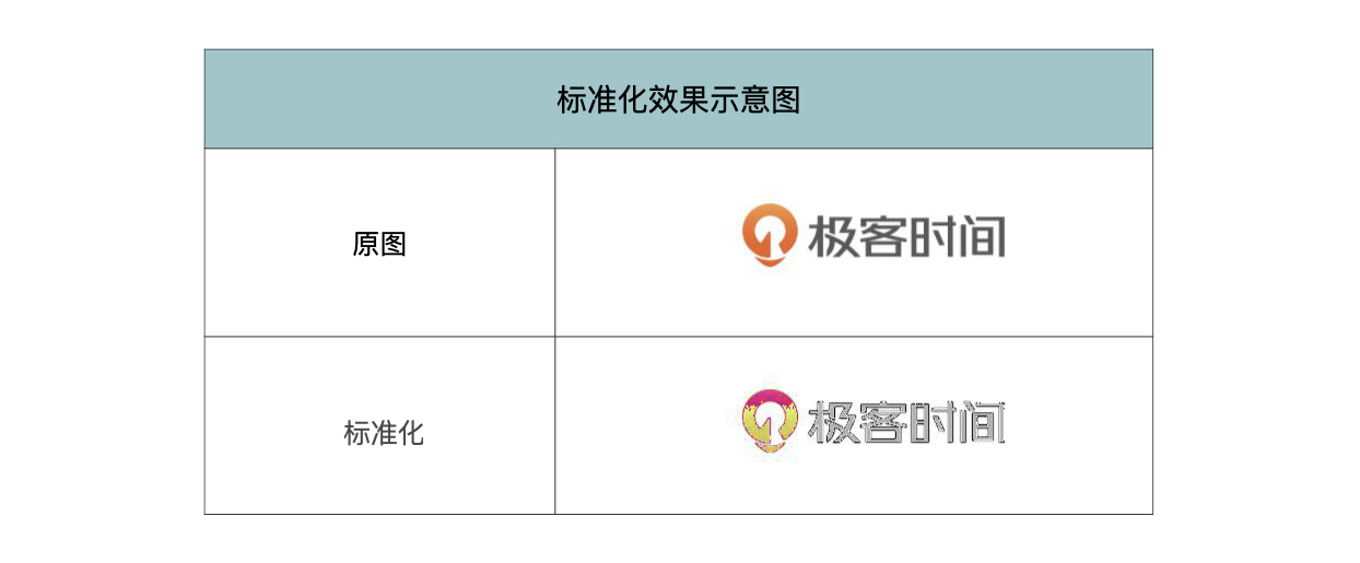 以极客时间的LOGO图片为例,我们来看看以(R, G, B)均值和标准差均为(0.5, 0.5, 0.5)来标准化图片后,是什么效果。