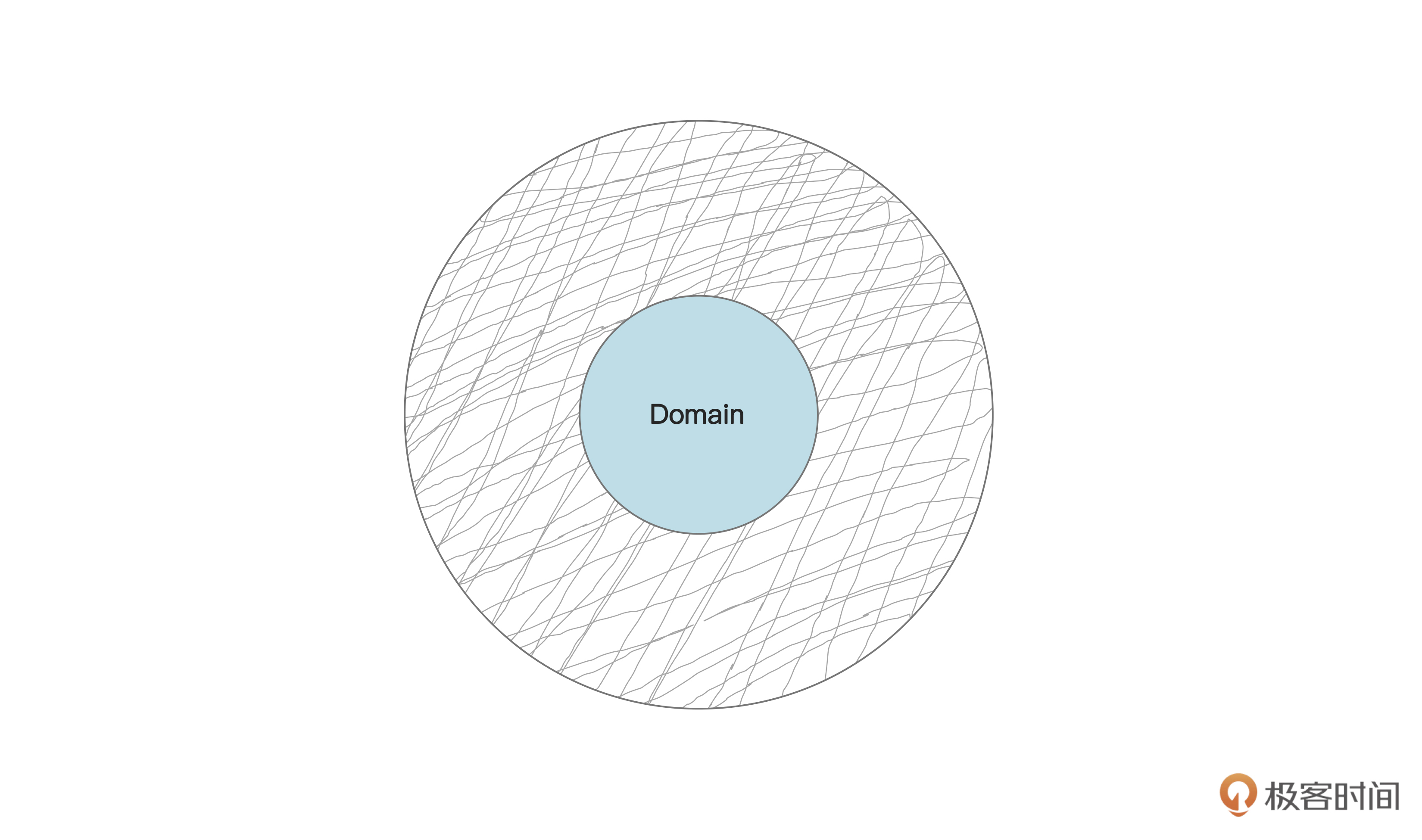 尽管领域层也会随着需求不断演化,但对于一会儿要介绍的其他层而言,这一层仍然是相对稳定的。所以,领域层处于我们架构的最内层,是整个系统的核心,这也符合DDD的基本理念。