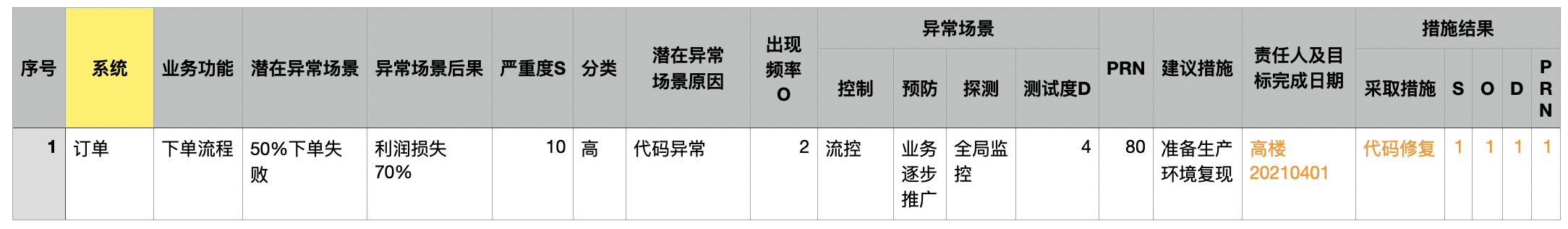如今,在IT技术圈中,也不乏有人尝试在软件系统中落地。在FMEA中,最重要的就是下面这样的表格,你在网上也经常能看到。