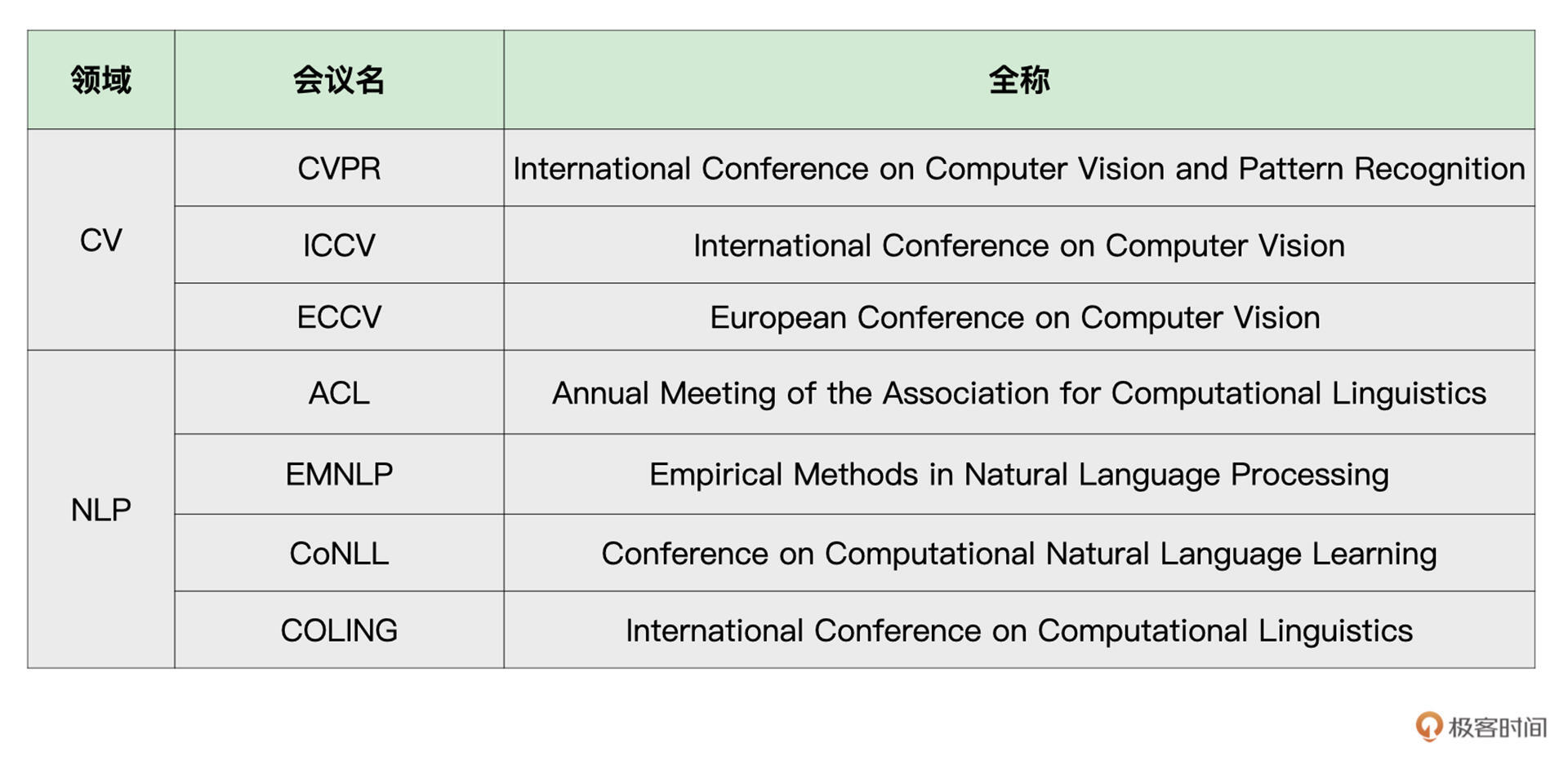 后面我列出了CV和NLP领域的顶会,供你参考。