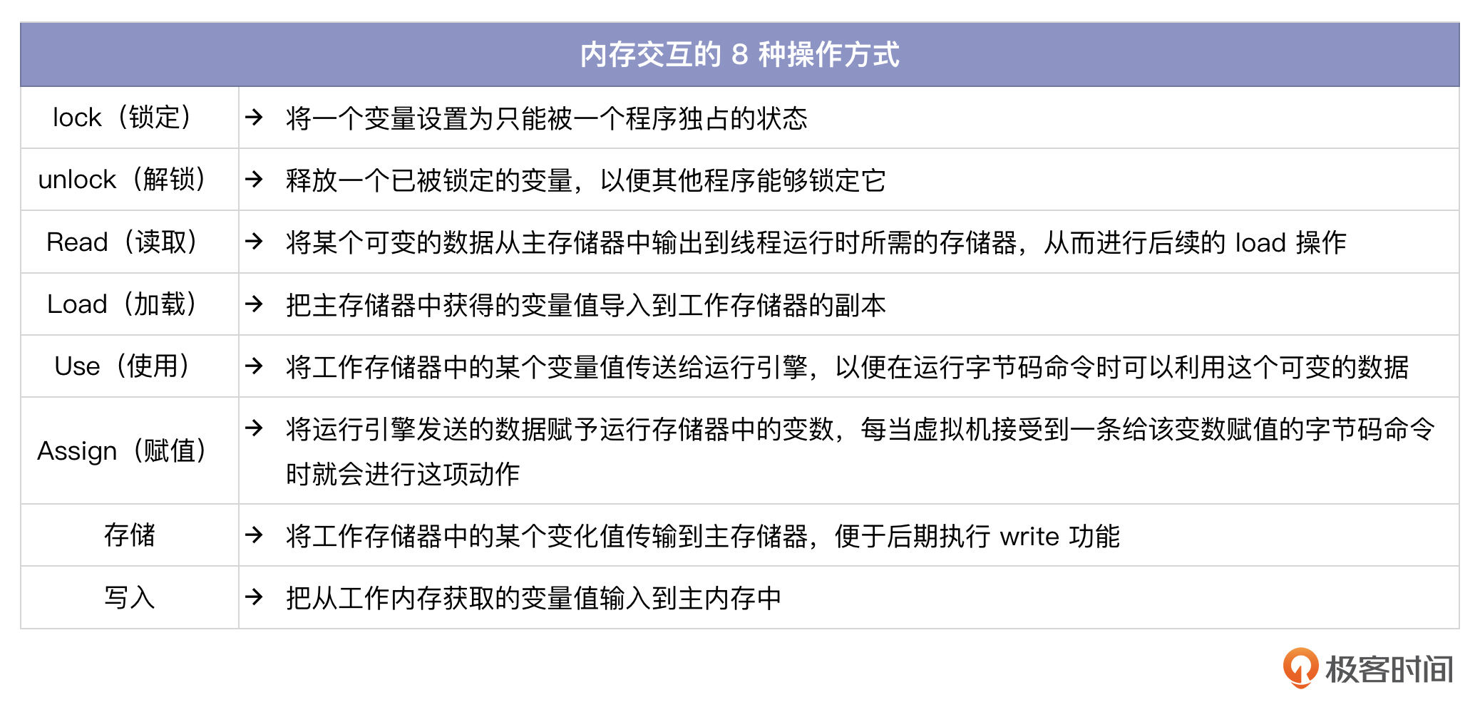在Java的内存模型中,有8种操作方式来保障主内存和工作内存数据的一致性。
