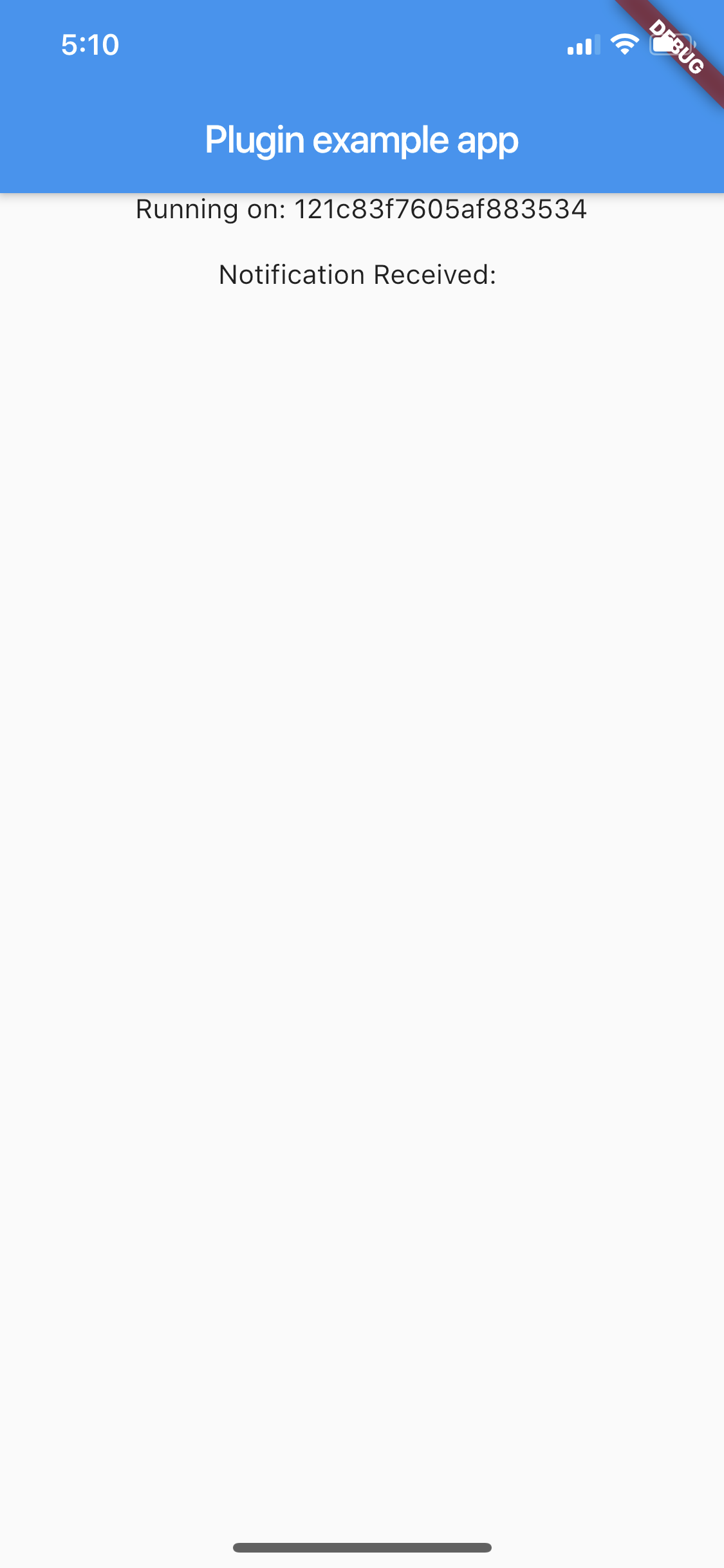 @override Widget build(BuildContext context) { return MaterialApp( home: Scaffold( body: Center( child: Column( children: <Widget>[ //展示regID,以及收到的消息 Text('Running on: $_regID\n'), Text('Notification Received: $_notification') ], ), ), ), ); } }