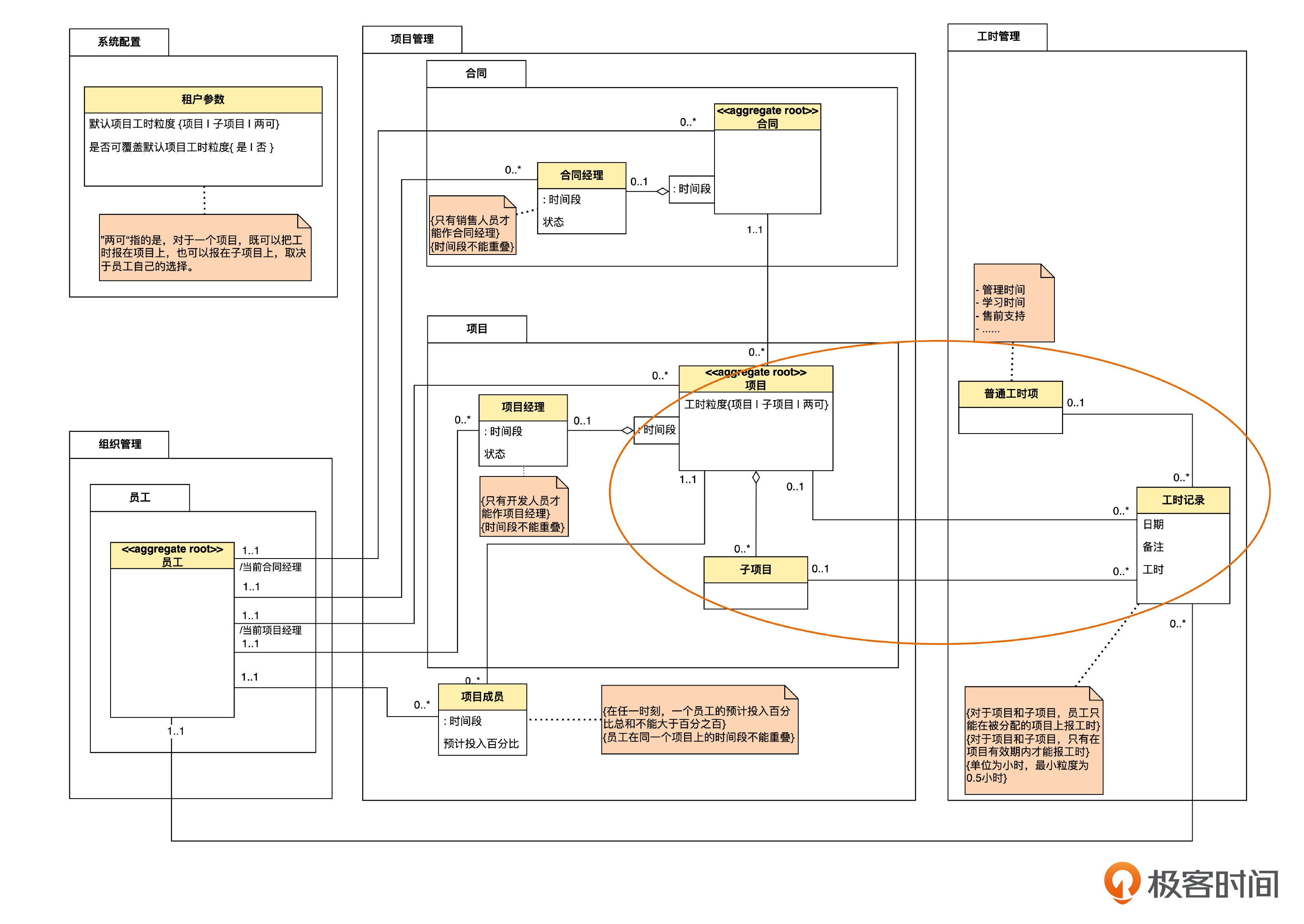 一个方向是先识别出了子类,然后从子类中归纳出共性,形成父类。比如在第22课,我们先识别出项目和子项目,然后发现这两者都能报工时,也就是说具有能够报工时这个共性,于是识别出了工时项这个表示共性的父类。
