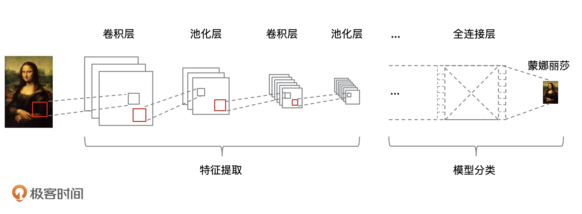 对于 CNN 网络模型来说,“模糊化图像”的这个操作就是通过 CNN 的卷积和池化来实现的。