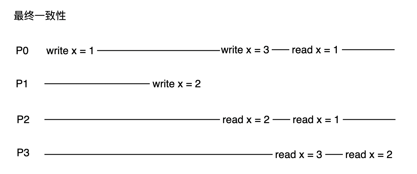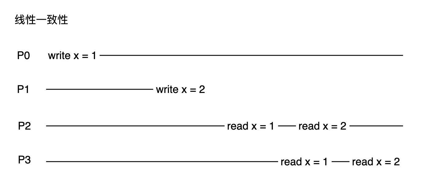 通过对一致性模型的学习,你可以通过读写操作序列,分别举出线性一致性、顺序一致性、因果一致性和最终一致性的例子吗?