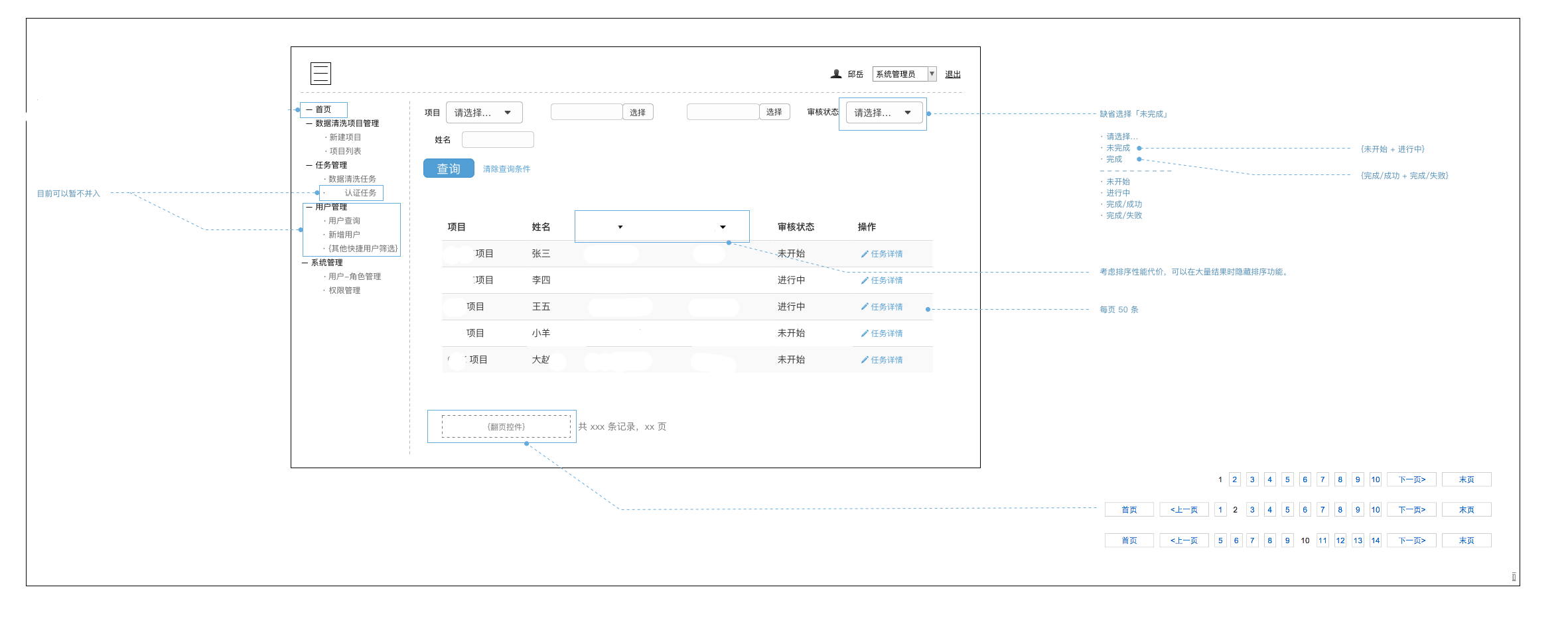 用这样的方式,将原型图中的组件逻辑和数据规则说清楚,读图者也有线索依赖,不会让一个人对着图不知所措。