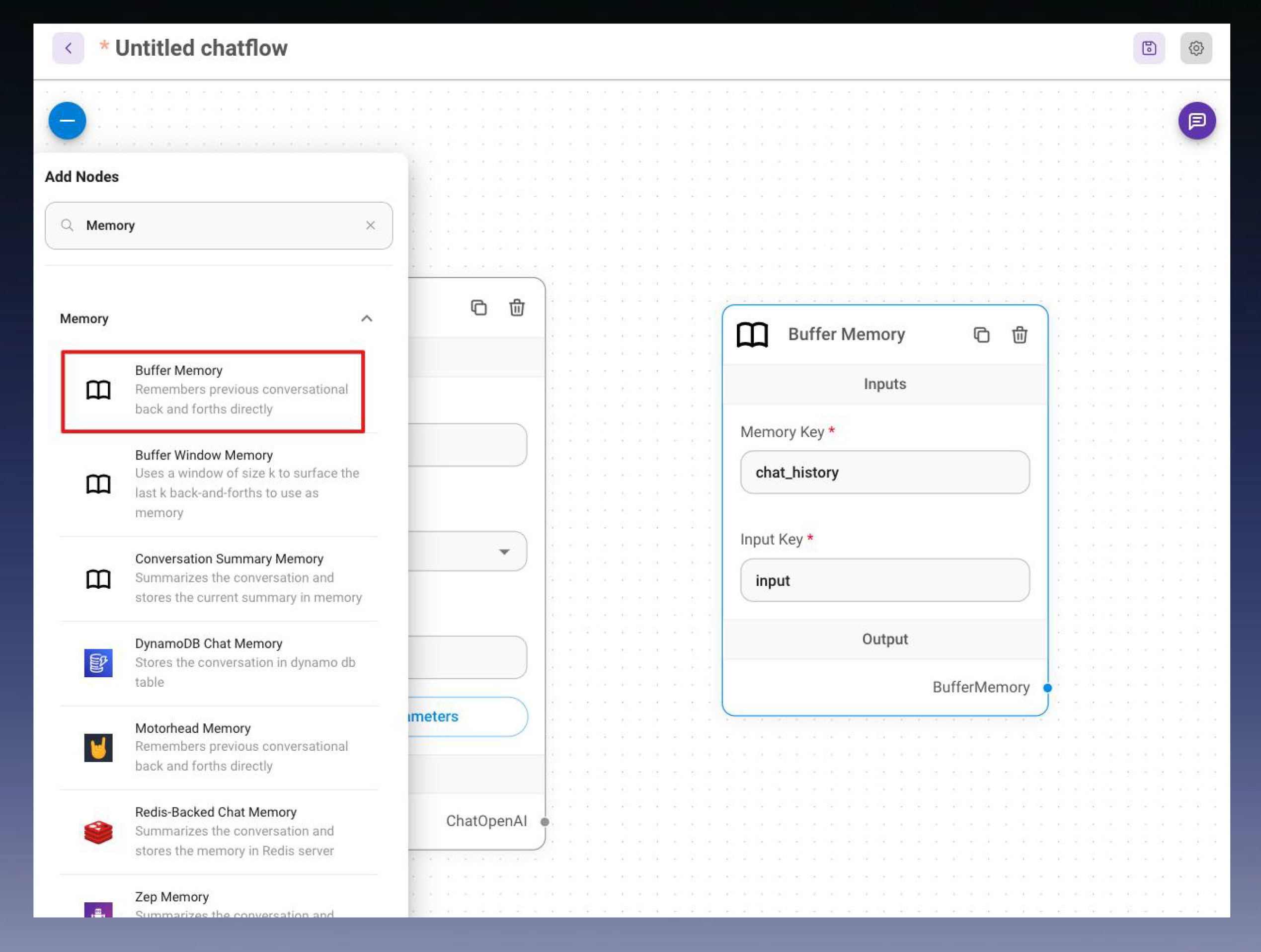 第一个是ConversationBufferMemory,它将帮助LLM记录我们的对话过程。