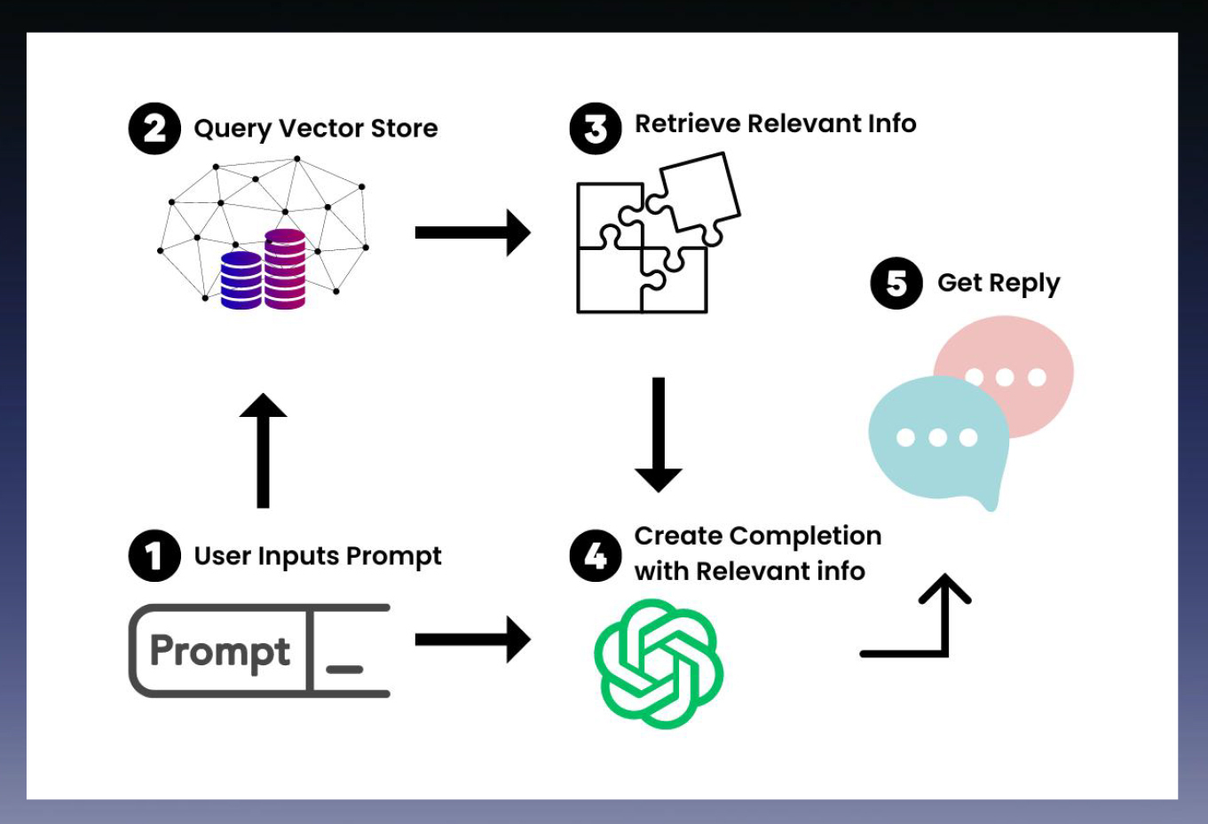 - 把文档片段和同事的问题一并交给大语言模型(LLM),让它理解文档内容,并针对问题形成恰当回答,返回给同事。