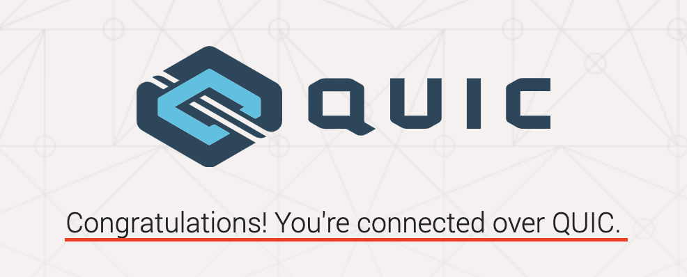 打开浏览器窗口,输入测试网站的URI(https://quic.nginx.org/),如果“运气好”,刷新几次就能够在网页上看到大大的QUIC标志了。