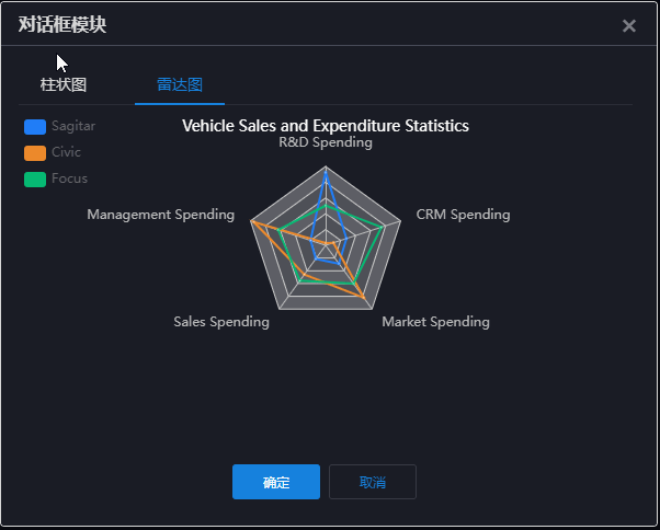 不难看出,这是一个对话框,里头装了一个tab页,有2个页签,页签里有一个雷达图。显然这里是有层次结构的,对话框是一层,tab页是第二层,雷达图在第三层。但是,这只是你以为的,在设计师眼里,这个设计稿是上下结构的!最上面一条是对话框标题组件,下面一条是页签头组件,然后是雷达图组件,最下面是对话框按钮栏组件。所以,作为研发的你,有时无法搞清楚UX设计师是如何思考问题的,这一点都不用觉得奇怪。