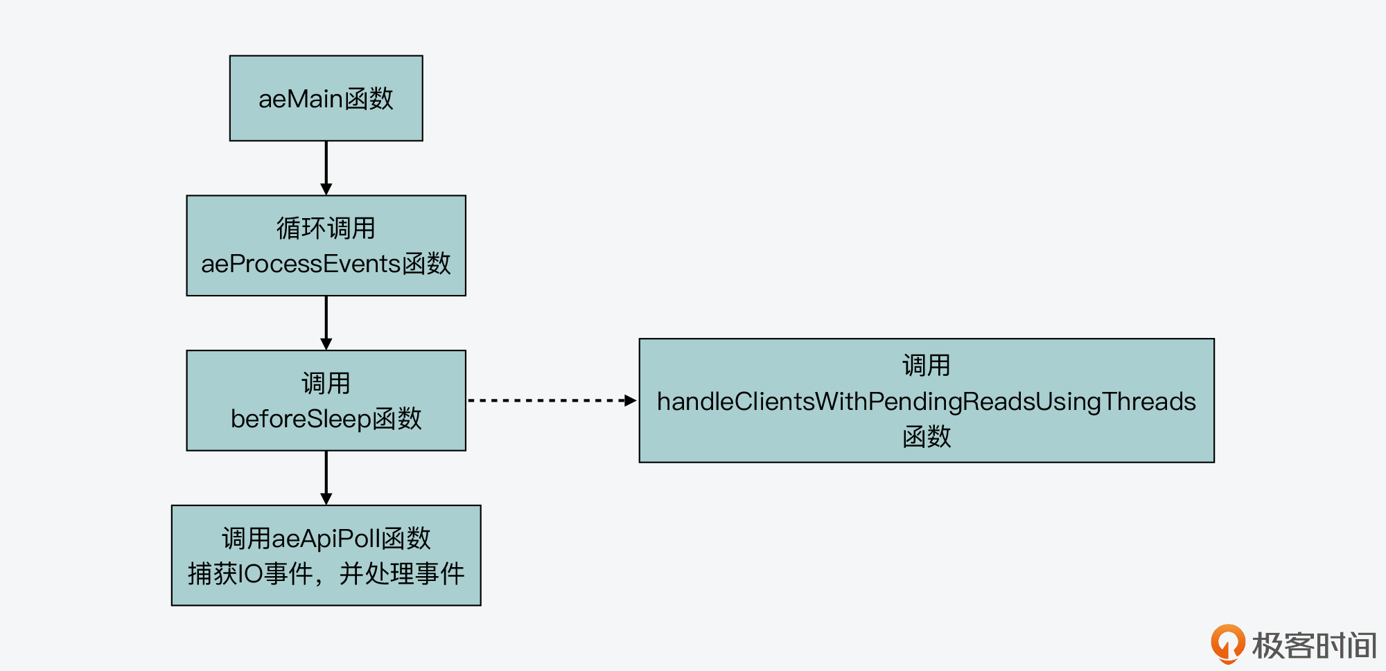 在Redis 6.0版本的代码中,事件驱动框架同样是调用aeMain函数来执行事件循环流程,该循环流程会调用aeProcessEvents函数处理各种事件。而在aeProcessEvents函数实际调用aeApiPoll函数捕获IO事件之前,beforeSleep函数会被调用。